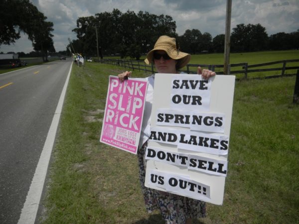 The Frank Stronach Plant Science Center is the home of the University of Florida’s Institute of Food and Agricultural Science’s agronomic, fruit and vegetable research efforts.  Today marked the dedication of the conference center to Stronach himself.  The celebration wasn’t without controversy.  Protesters turned out from a variety of locations and organizations over Stronach’s plans for a 30,000 acre organic beef ranch and Stronach’s permit request to pump 13 and a half million gallons of water per day for the ranch.  As Florida’s 89.1, WUFT-FM’s Donna Green-Townsend reports, the Canadian businessman took note of the outside protests and promised to be a good corporate citizen in Marion County.