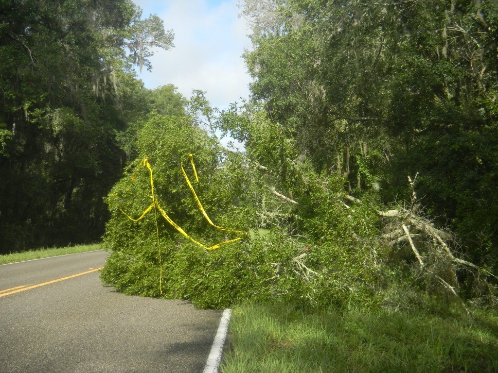 Micanopy, like many other North Central Florida communities, experienced heavy rain throughout the night.  The storm conditions brought down a few trees on county highways.  The rain also caused the collapse of a roof on an unoccupied building at the intersection of U.S. 441 and CR 234.  A few hundred residents in Cross Creek experienced a temporary power outage overnight.  (June 25th, 2012)